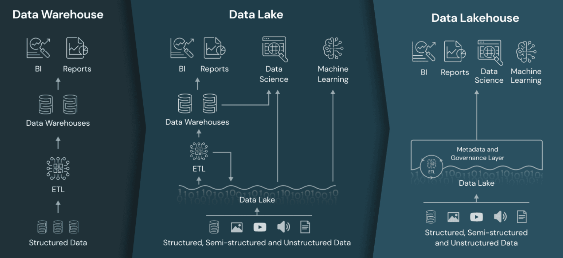 데이터 레이크하우스는 데이터 웨어하우스와 데이터 레이크하우스의 장점을 모아두려고 했습니다.
